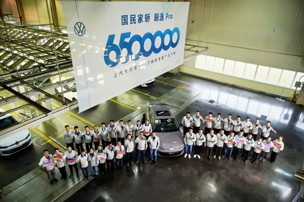 上汽大众朗逸家族第650万辆下线现场。企业供图