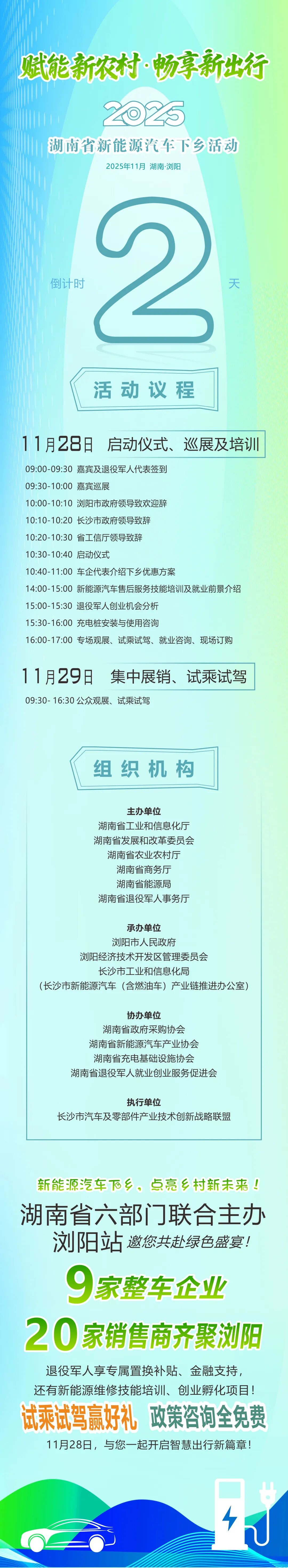 2025年湖南省新能源汽车下乡活动浏阳站将于11月28日启幕!
