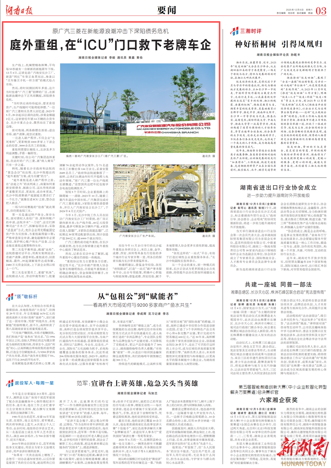 12月6日,湖南日报3版刊发报道,深度解读了长沙中院如何创新运用“庭外重组”机制,在短短5个月内帮助企业走出破产边缘,最终实现股东增资清偿债务,并成功引入广汽埃安升级投产的背景故事。
