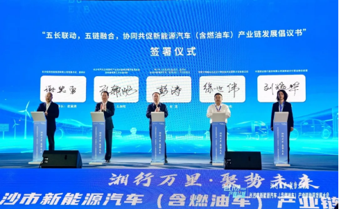 大会以“湘行万里·聚势未来”为主题。会上,长沙市新能源汽车(含燃油车)产业链链长、校长、行长、盟长、基金董事长共同签署《五长联动 五链融合 协同共促新能源汽车(含燃油车)产业链发展倡议》,号召各方携手共进,全力推动长沙汽车产业链的协同创新与发展。