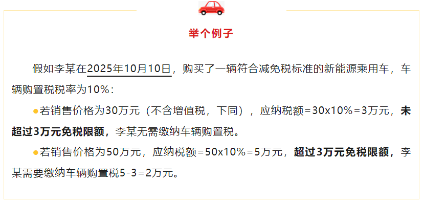 对购置日期在2024年1月1日至2025年12月31日期间的新能源汽车免征车辆购置税。其中,每辆新能源乘用车免税额不超过3万元。