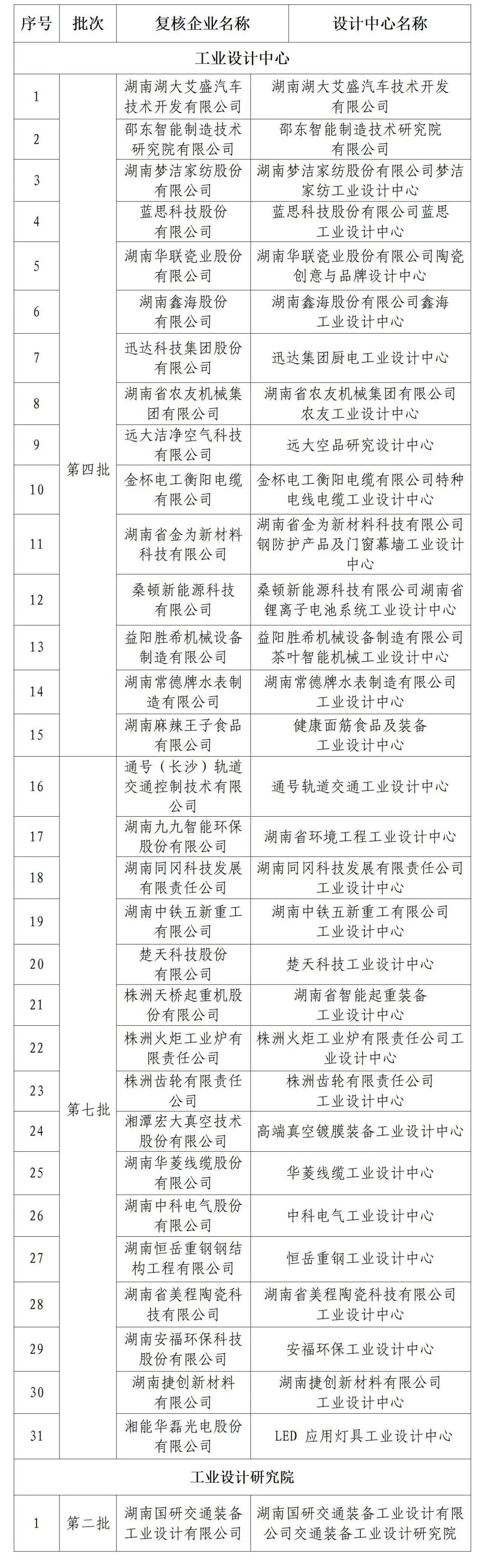 附件:湖南省工业设计中心和工业设计研究院复核通过公示名单